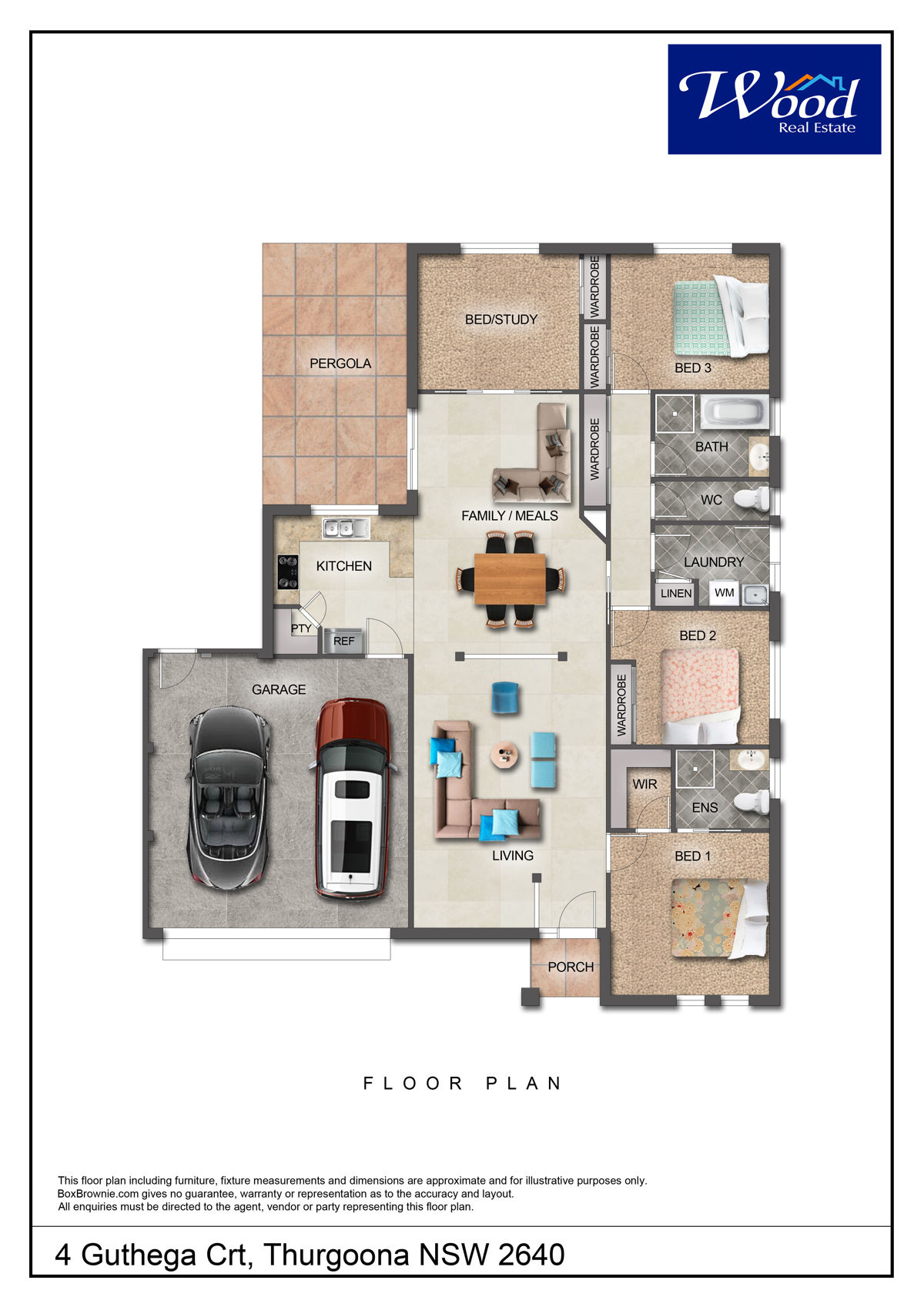 Ideally located in a quiet court just moments from the University, shopping precinct, and golf course, this modern four-bedroom home offers comfort, convenience, and versatility in one of Thurgoona's most sought-after pockets. Thoughtfully designed, the home provides two generous living areas - a spacious lounge plus a tiled open-plan family and meals zone. The fourth bedroom, also tiled and fitted with a sliding glass door to the outdoors, makes an ideal home office or guest room for those seeking flexibility. The contemporary kitchen is both stylish and functional, featuring ample storage, extensive preparation space, and quality appliances. Internal access from the double lock-up garage ensures ease when unloading groceries. The adjoining meals area flows seamlessly to a covered pergola, perfect for entertaining or simply unwinding in privacy. The master suite is well-separated from the remaining bedrooms and includes a walk-in robe and ensuite, while the additional bedrooms all feature built-in robes. Year-round comfort is assured with ducted heating and cooling throughout. Set on a 504sqm fully fenced block, there's ample space for kids and pets to play, along with a wide side gate offering ideal access for a caravan, trailer, or boat - a rare find in modern developments. Positioned within walking distance to schools, transport, sporting facilities, and all the amenities Thurgoona is known for, this home is an outstanding opportunity to secure lifestyle and location in one. Rental opinion $620.00 to $640.00 per week. Don't wait - contact us today to arrange your inspection.