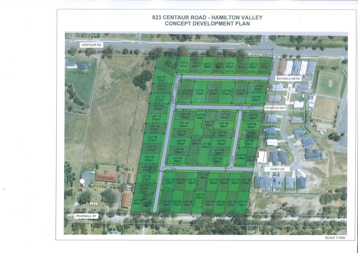 Positioned within Albury's growth corridor, well serviced by major arterial roads, easy commute to the city centre, Lavington shopping centre, schooling, sporting precincts and most facilities. Adjacent to the Centaur Park residential estate and among others, the two parcels of land adjoin The Harry Cres estate giving 5 road access points to continue the overall planned estate. Albury is in desperate need for developed land, with most estates releasing stages which sell out in days. Here is an opportunity to stage a development across 2 separate land titles. 827 Centaur Rd, Hamilton Valley 2.83 Ha | 28,300sqm | 7 Acres. Adjoining Harry Cres residential estate with 3 access roads into this title. Dual road access from both Centaur Rd & Pearsall Streets. 841 Centaur Rd, Hamilton Valley 2.83 Ha Dual road access plus a concept plan presented showing the exceptional access. Approximate yield is suggested around 60 blocks of varying sizes or create your own unique design. Concept plan provided as an example only, subject to council approval. Purchasers should be advised that the initial concept plan has not undergone any formal review by Council, and that potential purchasers are strongly encouraged to meet with Council to discuss potential development opportunities in detail. Please call for more information and terms.